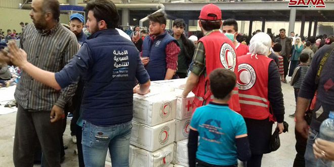 كاميرا سانا اليوم التقت عددا من المدنيين الخارجين من الغوطة الشرقية الذين أمنهم ونقلهم الجيش العربي السوري وفرق الهلال الأحمر إلى المركز حيث تزاحمت الكلمات على ثغر الطفلة ملك وهي تعبر عن سعادتها بخروجها مع أخوتها إلى بر الأمان قائلة “كنا نبقى طوال اليوم على وجبة واحدة من خبز الشعير.. منعونا من الذهاب للمدرسة.. وندعو الله ان يحمي الجيش الذي أمن خروجنا” وليس بعيدا عنها يروي محمد من دوما ما حصل معه بغصة مستذكراً أن الإرهابيين حبسوه لسنتين وقتلوا أقاربه كما اعتدوا على عائلته بالضرب واصفاً الوضع داخل المدينة بالمأساوي وداعياً الأهالي الى أن يتغلبوا على خوفهم ويخرجوا إلى كنف الدولة وحمى الجيش العربي السوري.