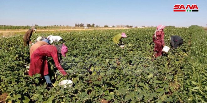 يواصل مزارعو ريف حمص الشمالي جني محصول الباذنجان بالرغم من تراجع الانتاج هذا العام مقارنة بالأعوام السابقة.