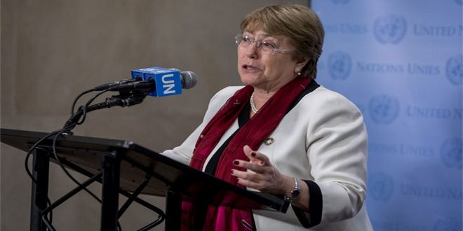 وقالت باشيليت: “يمكن وصف حالة حقوق الإنسان في الأراضي الفلسطينية المحتلة بأنها كارثية ومن الواضح أنه سيكون لها تأثيرات مدمرة على آفاق التوصل إلى تسوية القضية الفلسطينية والتنمية المستدامة” مؤكدة أن إنهاء الاحتلال هو السبيل الوحيد لتحقيق السلام بين الفلسطينيين وكيان الاحتلال.