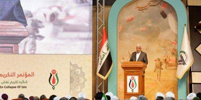 وشدد رئيس تحالف الفتح في الحشد الشعبي هادي العامري على رفض العراقيين وجود القوات الأمريكية على أراضي العراق مضيفا أن “بعض الدول استهدفت من خلال وجود تنظيم “داعش” الإرهابي تقسيم العراق لكنه خرج موحدا عزيزا بسواعد الأبطال والشهداء”.