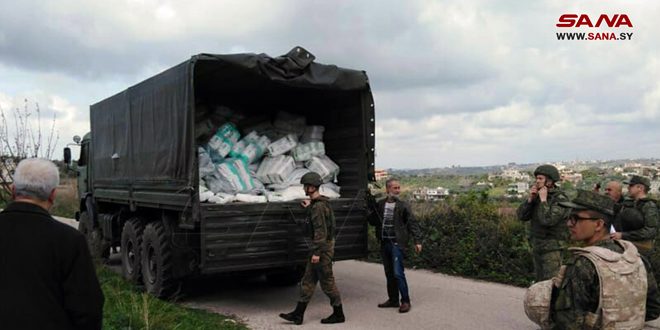 وقال مختار القرية حيان صقور: إنه جرى توزيع المواد الغذائية على الأهالي، والتي من شأنها أن تساعدهم في أوضاعهم المعيشية، منوهاً بموقف روسيا الاتحادية المساند لسورية في هذه الظروف الصعبة.