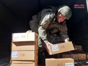 قدم مركز التنسيق الروسي في قاعدة حميميم اليوم نحو 6 أطنان من المساعدات الإنسانية، تضمنت مواد غذائية وألبسة لجمعية المساعي الخيرية ودار الأيتام في اللاذقية.