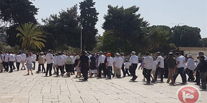 جدد مستوطنون إسرائيليون اليوم اقتحام المسجد الأقصى بحماية قوات الاحتلال.