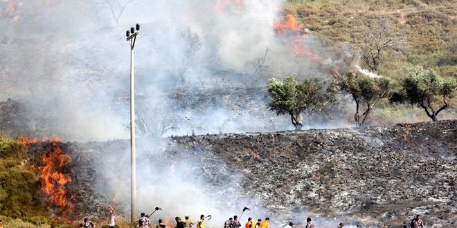 مستوطنون يضرمون النار في أراضي الفلسطينيين قرب نابلس