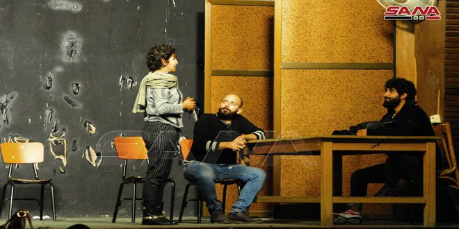 دمشق-سانا تتحضر مجموعة من الشباب هواة المسرح لتقديم العرض المسرحي نور العيون للأديب جوان جان …