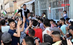 فضل الأحمد أمين سر منطقة حماة لحركة فتح قال “نستمد اليوم من عزيمة وصمود وثبات أهلنا في الداخل الفلسطيني قوتنا وأملنا مجدداً في تحرير كامل التراب الفلسطيني” مؤكداً أن جميع الفصائل الفلسطينية اليوم يد واحدة وصف واحد ضد الاعتداءات الإسرائيلية.