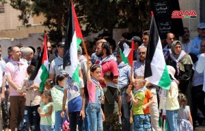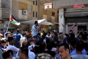 إلى ذلك نظمت الفصائل الفلسطينية في مدينة درعا وأهالي المدينة وقفة تضامنية نصرة لأهل فلسطين في القدس وغزة ضد العدوان الإسرائيلي المتواصل على الشعب الفلسطيني.