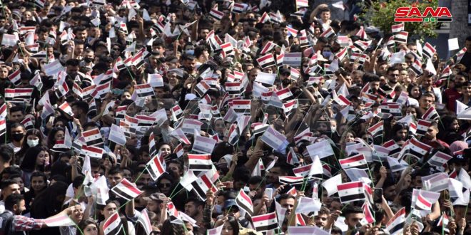 مسيرة حاشدة لطلاب جامعة طرطوس في مدينة طرطوس دعماً للاستحقاق الرئاسي