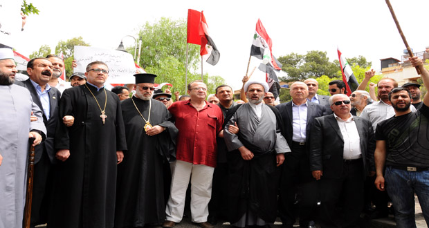 وفي كلمة له تحدث المعاون البطريركي للروم الأرثوذكس في سورية المطران لوقا الخوري عن معاني الوحدة الوطنية وأواصر المحبة والسلام التي تربط أبناء الشعب السوري الغيورين على وطنهم وبكل شرائحهم مضيفا.. “نؤكد للعالم أجمع أن في سورية شعبا واحدا ولن يكون فيها مكان للمجرمين والأشرار”.