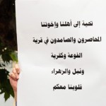 وندد المشاركون في الفعالية بالصمت الدولي والأممي والعربي حيال الحصار الذي يفرضه الإرهابيون على أهالي بلدتي الفوعة وكفريا بريف إدلب واستهدافهما بشكل شبه يومي بعشرات الصواريخ رافعين لافتات كتب عليها “إلى الصليب الأحمر والأمم المتحدة 40 ألف مدني محاصرون في الفوعة وكفريا” و”نطالب المجتمع الدولي بفك الحصار عن قرى كفريا والفوعة ونبل والزهراء” و”بدنا نصمد بدنا نقاوم وعلى وطننا ما بنساوم”.