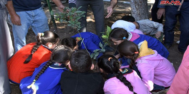 مسير وزراعة أشجار في يوم البيئة الوطني بحلب