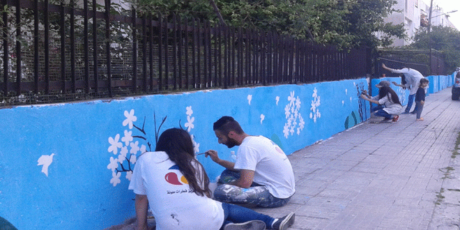 مشاركة شبابية لافتة فى مبادرة أهلية لتجميل شارع الياسمين فى حى الزراعة باللاذقية