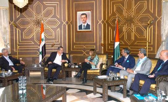 بحث اليوم محافظ السويداء الدكتور عاطف النداف مع الممثلة المقيمة لمنظمة الأمم المتحدة للطفولة اليونيسيف في سورية هناء سنجر سبل التعاون المشترك في مجالات المياه والتربية والتعليم والصرف الصحي والإصحاح البيئي وتأهيل مكبات النفايات الصلبة.