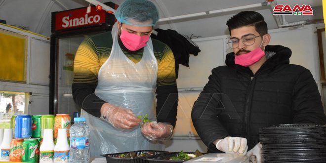 العامل في المشروع الشاب روزبا خدوج قال نعمل يومياً من الساعة الثانية عشرة ظهراً وحتى السادسة مساء ضمن فترة الغذاء ونحرص على تقديم أفضل الوجبات بطريقة صحية.