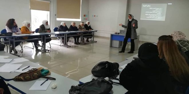 التدريب على ركائز التميز أشرفت عليه المدربة نسور صافية حيث قالت: “نستهدف من خلال هذه التدريبات طلاب وخريجي كليات التربية والآداب ساعين بذلك إلى الإسهام في تأهيل المعلمات الجدد ورفدهم بأحدث الوسائل التعليمية والإيضاحية التي تميز أداءهن ضمن الصف المدرسي بما ينعكس إيجاباً على جودة التعليم والأداء الدراسي للطلاب”.