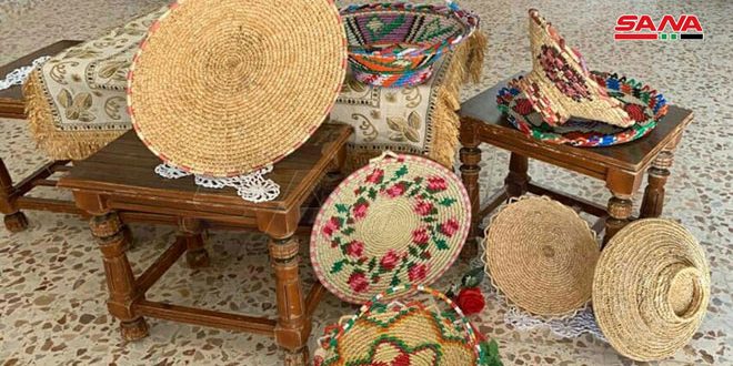اختارت المهندسة الزراعية هند الذيب هنيدي حرفة تصنيع المشغولات اليدوية المتنوعة من القش أو قصل القمح ضمن مشروعها متناهي الصغر الهادف لإعادة إحياء هذه الصناعة التراثية وحمايتها من الاندثار.