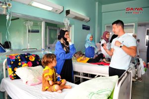 وجال أعضاء الوفد الروسي على عدد من أقسام المشفى وتفقدوا الخدمات الطبية المقدمة فيها، وقدموا بعض الهدايا للأطفال.