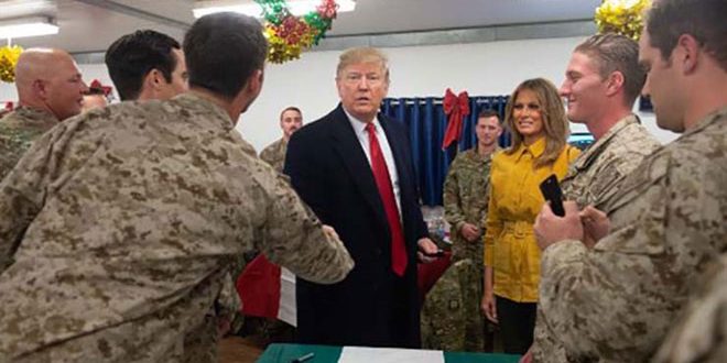 وكان ترامب قام أمس بتفقد جنود بلاده في قاعدة عين الأسد العسكرية في محافظة الأنبار في زيارة مفاجئة لم يعلن عنها من قبل.
