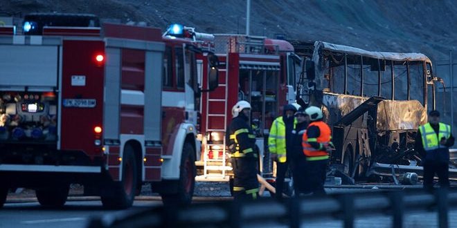 لقي 45 شخصاً على الأقل حتفهم إثر اشتعال النيران في حافلة قادمة من مقدونيا الشمالية على طريق سريع غرب بلغاريا اليوم.