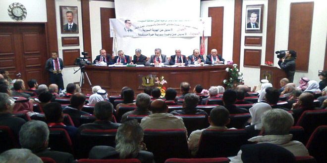 ولفت نائب محافظ السويداء المهندس أنور زين الدين إلى الدور الوطني للمقاولين في الاستمرار بتنفيذ المشروعات بالرغم من الظروف الراهنة مشيراً إلى الدور المهم الذي يعول على المقاولين في عملية إعادة البناء والإعمار خلال الفترة القادمة.