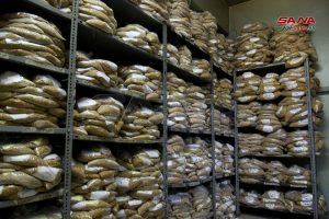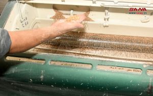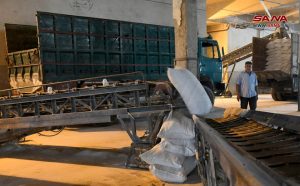 أي شائبة، يذهب بعدها إلى الكمامة لتعبئته ضمن أكياس، يزن كل واحد منها خمسين كيلوغراماً بحسب رئيس القسم بدر الأحمد، مشيراً إلى أنه يتم أخذ عينات من الطحين إلى المخبر كل ساعتين للتأكد من صحته، ومن ثم يحمل في السيارات ليتم توزيعه، كاشفاً أنه يتم يوميا طحن ما يتراوح بين 250 و 350 طناً من الطحين والنخالة.
