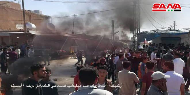 وذكرت مصادر محلية لمراسلة سانا أن أهالي قرية السعيدة بريف الرميلان الشرقي قطعوا الطريق العام الواصل بين مدينة رميلان وحقول النفط بالإطارات المحروقة بالتوازي مع مهاجمة مقرات وحواجز مسلحة للميليشيا وإحراق عدد منها في المنطقة.