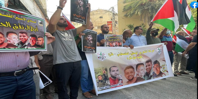 وفي قلقيلية عبر المشاركون خلال مظاهرة وسط المدينة عن دعمهم الكامل للأسرى في ظل الحملة المسعورة التي تشنها سلطات الاحتلال ضدهم والتي تصاعدت عقب انتزاع ستة أسرى حريتهم من معتقل جلبوع.