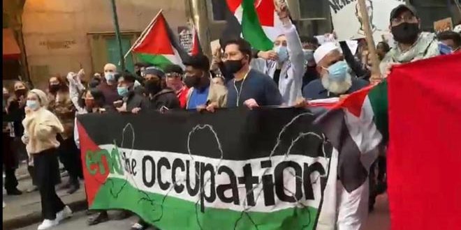 وذكرت وكالة وفا أن المشاركين في المظاهرة التي جابت شوارع مدينتي نيويورك وواشنطن رفعوا العلم الفلسطيني ورددوا شعارات تندد بمحاولات الاحتلال تهجير الفلسطينيين في حي الشيخ جراح قسرياً عن منازلهم وبانتهاكات قوات الاحتلال ومستوطنيه المتواصلة للمسجد الأقصى مطالبين المجتمع الدولي بالتدخل العاجل لتوفير الحماية الدولية للشعب الفلسطيني وإنهاء الاحتلال.