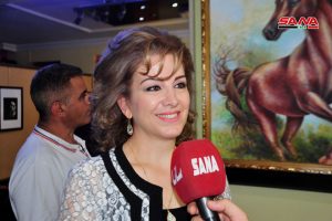 الفنانة اسميرالدا الحناوي والمشاركة بلوحة استخدمت بها تقنية الأكريليك بأسلوب انطباعي تعبيري وجدت أن الخيل يدل على القوة والعنفوان والشموخ الموجود لدى حواء المنتصرة على الخوف وهذا ما عبرت به بلوحتها لافتة إلى أن مشاركاتها بالمعارض تغني تجربتها بتمازج الأفكار والطرائق التي تستخدمها الفنانات وسط جو يحوي مشاعر الفرح والانتصار على الواقع الذي نعيشه.