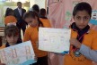 وبينت الطفلة أريام خرابة من الصف الثالث أنها رسمت علم سورية خفاقا في سماء الوطن كما تحبه دائما بينما أوضح الطفل عمران الخلف من الصف السادس أنه أطلق من خلال لوحته التي كتب فيها عبارة “سورية أحلى بلد” رسالة إلى العالم بأن أطفال سورية كانوا وما زالوا حصن سورية القوي وبناة مستقبلها المشرق.