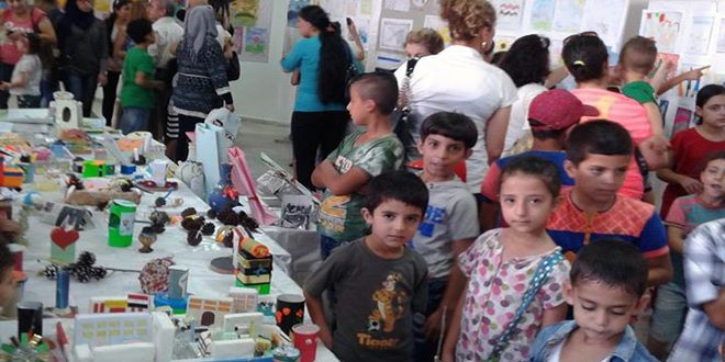 امتلأت قاعة المعارض في دار الأسد للثقافة والفنون باللاذقية بلوحات رسم وأخرى للخط العربي ومشغولات يدوية صنعتها أيدي أطفال النادي الصيفي الذي تقيمه الدار سنويا في اختتام فعاليات هذه الدورة.