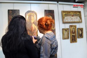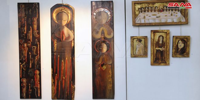 وجاءت مشاركة التشكيلية غادة حداد بلوحة ثلاثية كبيرة وعدة لوحات صغيرة تقترب في أسلوبها الفني من الأيقونة وقالت: “رسمت هذه اللوحات عام 2015 بروح الايقونة في وقت كنا نعيش فيه الألم مع الحاجة للصلاة فكل فنان مرتبط بتربيته وذاكرته اللتين تخرجان في وقت معين” لافتة إلى أن الاحتفالية تحقق حراكا ثقافيا جميلا يسهم في إثبات قدرة الفنانين السوريين على العطاء والعمل رغم ما نعيشه من صعوبات.