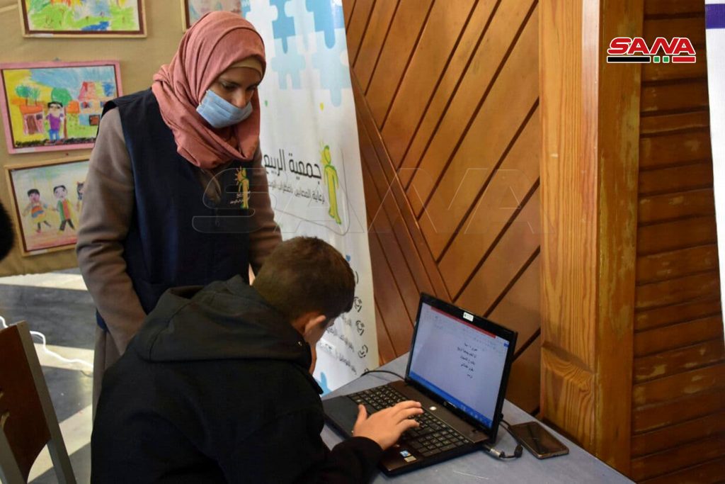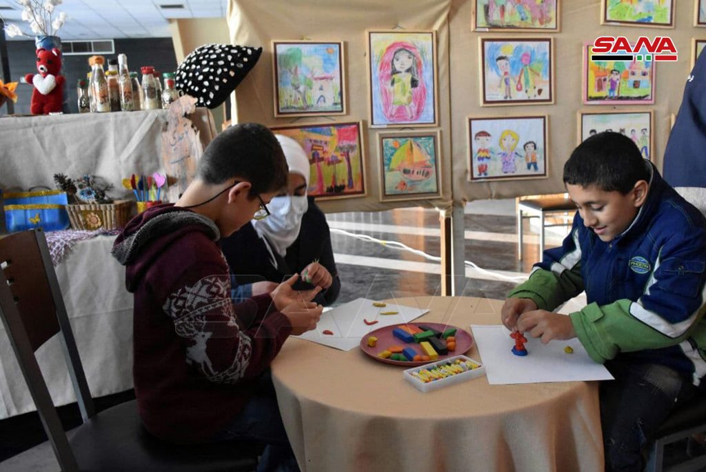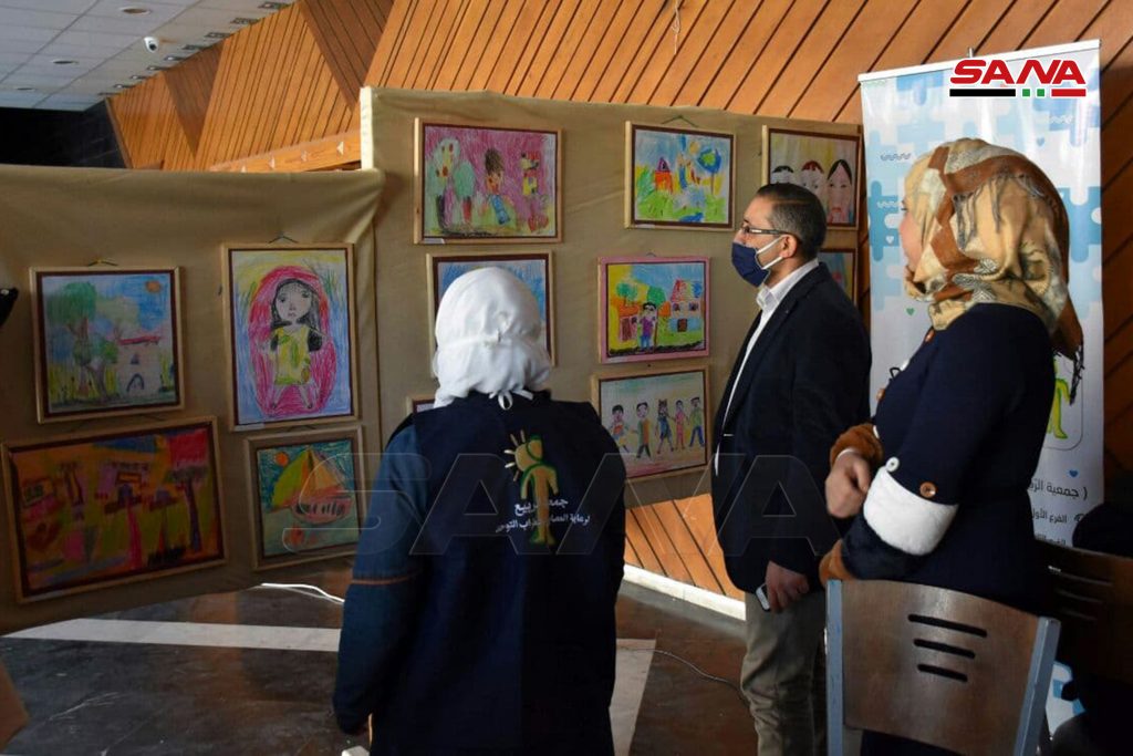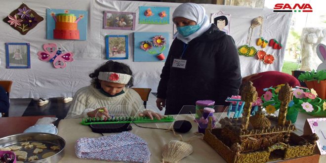 ضم المعرض الذي نظمته مديرية الشؤون الاجتماعية والعمل في حمص بمناسبة اليوم العالمي للأشخاص ذوي الإعاقة لوحات ومجسمات ووسائل تعليمية وفنية من نتاج الأطفال واليافعين في معاهد الرعاية الاجتماعية وعدد من الجمعيات الأهلية بالمحافظة.