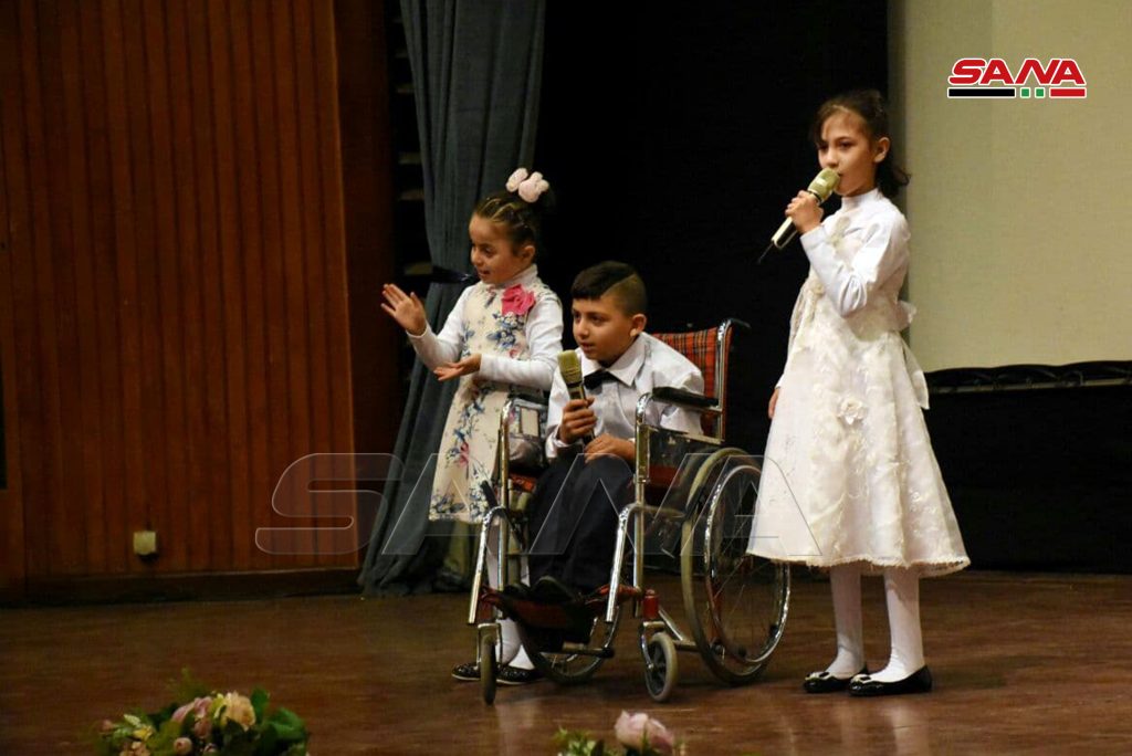 وعلى خشبة مسرح دار الثقافة بالمحافظة ووسط حضور أهلي ورسمي قدم أطفال وشباب من معاهد الرعاية الاجتماعية وعدد من الجمعيات الأهلية بحمص قصصا إنسانية وفقرات فنية وتمثيلية منوعة.
