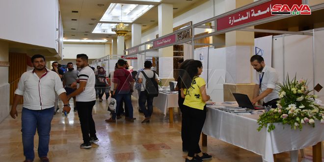 وقدم المعرض الذي استضافته “دار الأسد” للثقافة والفنون في حماة للعام الثالث على التوالي بمشاركة عدد من الجامعات الحكومية والخاصة في سورية فرصة للاطلاع على واقع الطالب السوري ومساعدته على اختيار الطريق الذي يشبع رغبته في مواصلة مسيرة تحصيله العلمي.