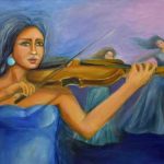 الفنانة كارمن شقيرة تشارك في المعرض بلوحتين تعكسان المدرستين الواقعية والتعبيرية مبينة أهمية عودة الحياة الفنية التشكيلية بحمص بزخم أقوى.