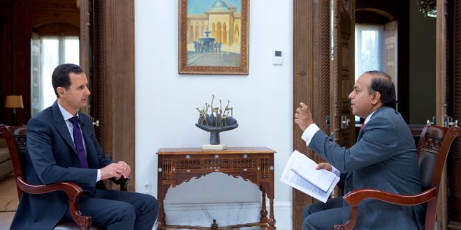 مقابلة الرئيس الأسد مع قناة “ويون تي في” الهندية