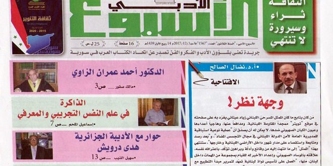 مقالات في الأدب والفكر وأعلامهما فضلا عن نتاجات أدبية في الشعر والقصة تضمنها العدد الجديد من جريدة الأسبوع الأدبي الصادرة عن اتحاد الكتاب العرب.