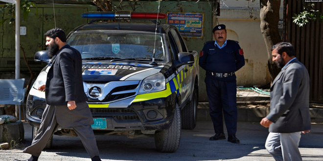 قُتل شرطي وأصيب اثنان بجروح في تبادل لإطلاق النار في العاصمة الباكستانية إسلام أباد.