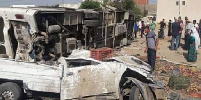 قتل وأصيب عشرات الأشخاص في حادث سير مروع وقع اليوم في ولاية القصرين وسط غرب تونس.