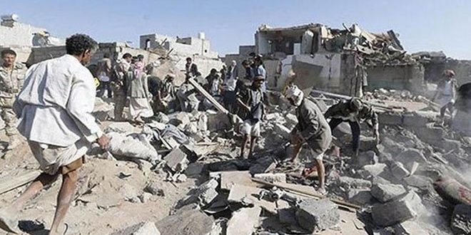 قتل 11 يمنياً وأصيب خمسة آخرون اليوم في أربع غارات شنها طيران العدوان السعودي على مدينة يريم بمحافظة إب وسط اليمن.