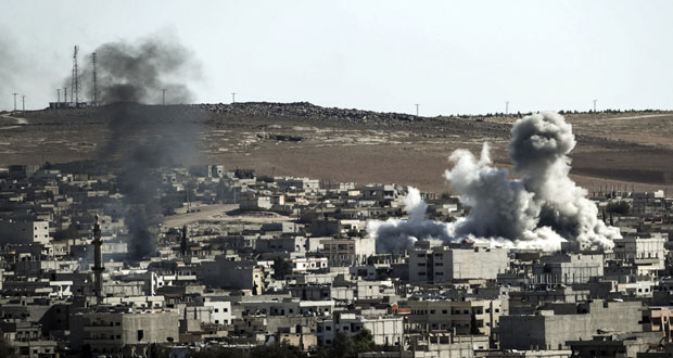 وتتعرض مدينة عين العرب منذ 16 أيلول الماضى لاعتداء شرس يشنه تنظيم /داعش/ الإرهابي يواجهه أهاليها بمزيد من التصميم والارادة فى الدفاع عن مدينتهم ومنع الإرهابيين من دخولها.