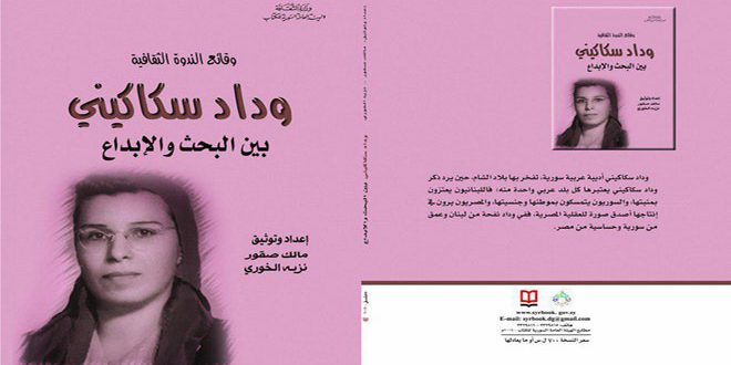 “وداد سكاكيني بين البحث والإبداع” عنوان الكتاب الذي صدر حديثا بهدف تسليط الضوء على المرأة السورية المبدعة لتكون أنموذجا لمثيلاتها في الأجيال القادمة وهو محاضرات لباحثين سوريين حول تجربة سكاكيني 1913-1991 إضافة إلى مختارات من أدبها.