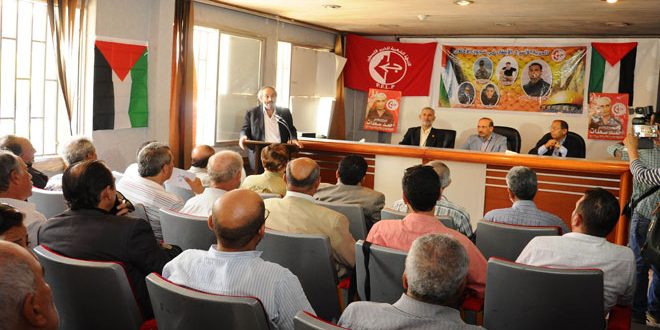 وفي ملتقى تضامني بالتعاون مع اتحاد الكتاب العرب أكدت الجبهة الشعبية لتحرير فلسطين في بيان صحفي أن “تعليق الأسير بلال الكايد إضرابه عن الطعام بعد التوصل إلى اتفاق يقضي بتحديد مدة الاعتقال الإداري من دون تجديد ووقف العزل الانفرادي والسماح لعائلته بزيارته يعد انتصارا مهما للشعب الفلسطيني وهزيمة للسجان الصهيوني الذي فشلت محاولاته الحثيثة بإخضاع الأسير الكايد ومحاولة تمرير سياسة الاعتقال الاداري”.