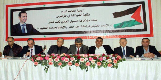 طالب أعضاء المؤتمر السنوي لفرع نقابة الصيادلة بطرطوس بإعادة مناقشة موضوع التأمين الصحي بوجود جميع أطراف العملية التامينية لمعالجة المعوقات وتطوير قانون تنظيم المهنة بما يتناسب مع العدد المتزايد للصيادلة حتى تتكمن النقابة من دعم خزينة الدولة ودعم أعضائها.