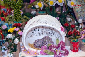 المعرض الذي تنظمه مجموعة نساء صغيرات مبدعات بالتعاون مع غرفة تجارة حمص، تنوعت معروضاته بين التحف والصمديات والمشغولات اليدوية والمطرزات والإكسسوارات والورود، التي جمعت ما بين التراث والحداثة لترضي أذواق الجمهور.