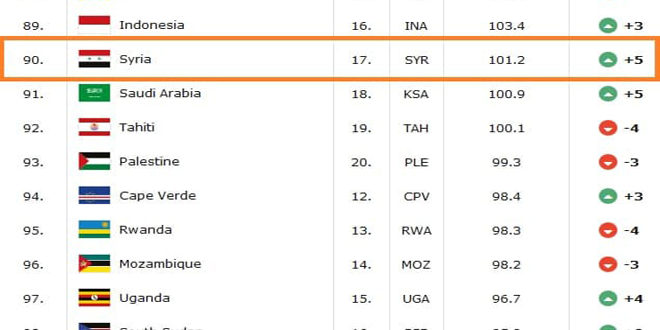 تقدم منتخب سورية لكرة السلة خمسة مراكز في التصنيف العالمي للاتحاد الدولي لكرة السلة ليصبح في الثامن عربياً والسابع عشر آسيوياً والتسعين عالمياً.