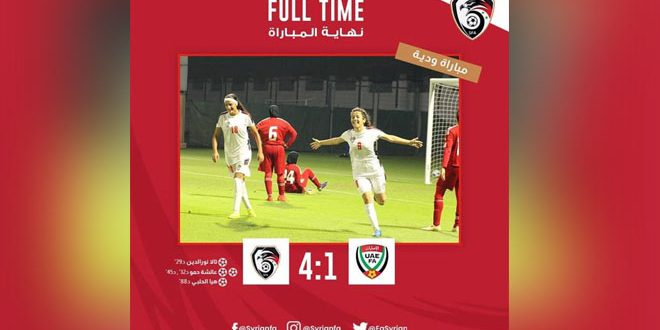 فاز منتخب سورية لكرة القدم للسيدات على نظيره الإماراتي بأربعة أهداف مقابل هدف في مباراة ودية جمعتهما اليوم على ملعب الاتحاد الإماراتي وذلك ضمن تحضيراته لبطولة غرب آسيا التي ستقام في الأردن نهاية الشهر الحالي.