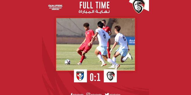 فاز منتخب سورية لكرة القدم للشباب على منتخب الصين تايبيه بهدف دون رد في المباراة التي جمعتهما اليوم في العاصمة الأردنية عمان في افتتاح مشاركته في التصفيات الآسيوية المؤهلة لكأس آسيا في اوزبكستان 2023 وذلك لحساب المجموعة الرابعة.