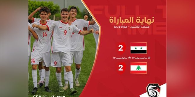 تعادل منتخب سورية لكرة القدم للناشئين مع نظيره اللبناني بهدفين لمثلهما في اللقاء الودي الذي جمعهما اليوم في لبنان.